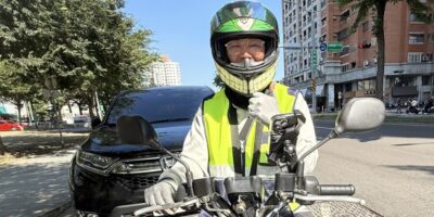 後來她看到入口處有提供封箱膠帶,靈機一動將4盒甜點和1盒鮭魚全部綑在一起,不用擔心騎車或2手拿會掉落「下次一定要預備購物袋或謹慎手滑」。