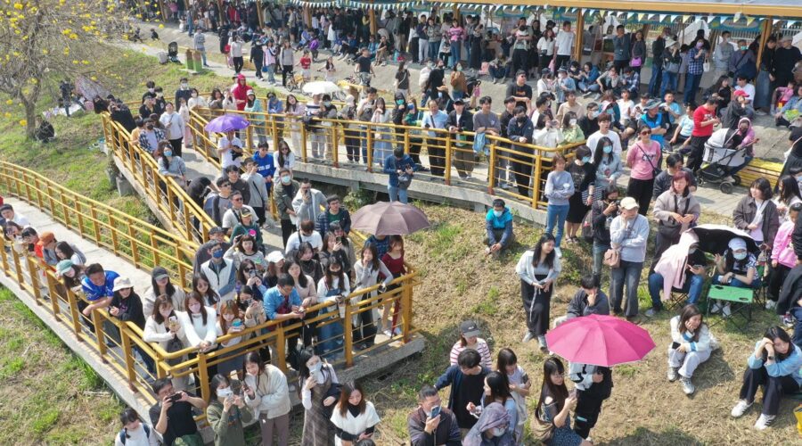 結合花季、音樂、市集與環保元素,嘉義市政府所舉辦的「潮風鈴-野餐音樂市集」今(8)日上午在八掌溪右岸河堤(吳鳳南路547巷旁)登場。一早便湧入民眾與家人、朋友出門踏青,在搖曳金黃的黃花風鈴木花海中享受明媚春光。嘉義市長黃敏惠特別出席活動,聆聽歌手梁文音動人演唱,黃敏惠市長更變成小粉絲,與歌手梁文音互動合照,與遊客們在音樂、美景相伴下度過愜意午後。