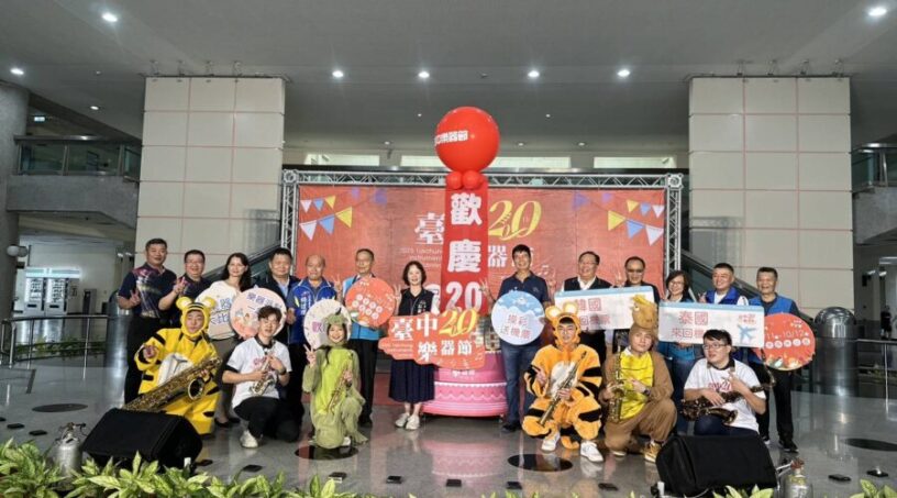 「2025台中樂器節」記者會今(25)日下午於市府陽明大樓舉行,為活動邁入第20週年揭開序幕。現場特別邀請在地樂團-后里愛樂薩克斯風重奏團,樂手們帶來四種不同聲部薩克斯風的精彩演出,除展現薩克斯風演奏多層次的音色特色樣貌,更配合曲目裝扮特色服飾,共同歡慶台中樂器節邁入20週年,打造出「一起玩音樂,歡樂享盛會」的節慶氛圍。