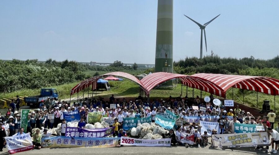 台中市政府環境保護局今(28)日與中華民國荒野保護協會在大甲松柏漁港西勢海堤舉辦「愛海無懼-沒塑去旅行」公益淨灘暨煙蒂減量宣導活動,號召住商不動產、海巡署中部分署第三岸巡隊、中威風力發電公司、水利署第三河川分署、台中市大甲國中童軍團、西苑高中等單位共襄盛舉,現場近千名民眾參與,清出一般垃圾400公斤(含煙蒂2,200根)及資源回收200公斤,以實際行動守護海洋生態。