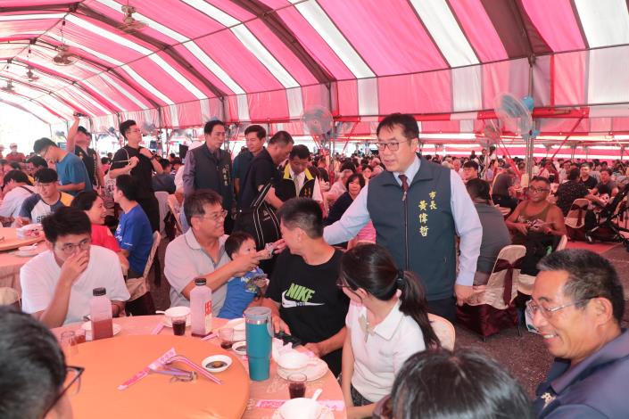 2025台南七股七寶宴今(28)日在七股鹽山熱鬧登場,市長黃偉哲親臨現場,誠摯歡迎鄉親與各地遊客共襄盛舉。今年活動首度擴大開放網路報名,席次增加至130桌,報名一開放即迅速額滿,甚至仍有民眾詢問候補,可見七寶宴深受大眾喜愛與支持。