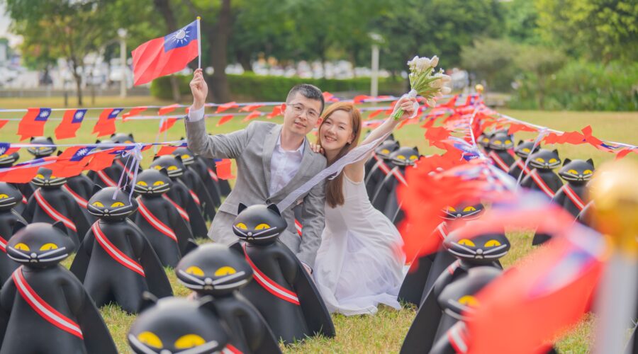 「超可愛!」本身就愛貓的新娘張小姐說,今天在風禾公園拍婚紗,看到黑貓裝置藝術覺得超驚喜,立刻決定納入婚紗景點之一。新郎詹先生則笑說,在國慶景點前拍婚紗,有「喜上加喜」的感覺。現場民眾也表示,今年國慶佈置不僅有創意,更充滿童趣與溫度。