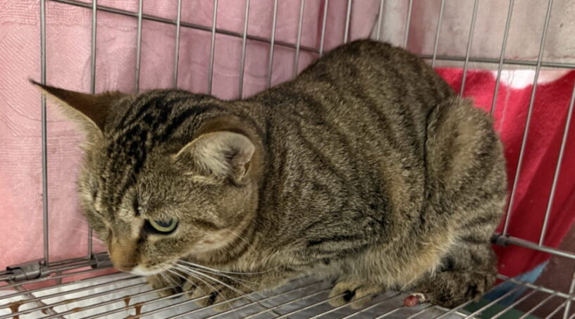 新北市動保處日前接獲通報新店區下坑子口路有隻虎斑黑貓,疑似車禍受傷屁股流血,動保處隨即派員將受傷黑虎斑貓帶回毛寶貝醫療中心進行檢傷醫療,經醫療中心李獸醫師檢查後,發現虎斑黑貓尾巴末端傷口嚴重潰爛,應該是在圍牆行走、鑽洞或穿越狹窄空間時遭尖銳物切傷所造成,須進行斷尾手術,以避免傷口感染導致下半身癱瘓,黑虎斑貓經過輸液治療及手術後已恢復健康,由住在中和的李先生認養,有了幸福溫暖的家。
