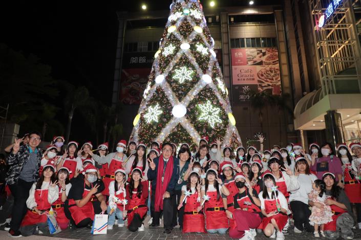 台南大遠百今(1)日晚間於大遠百1樓廣場舉辦「遠百愛的串連 愛分享遠百聖誕公益點燈活動」,邀請台南市長黃偉哲及夫人劉育菁與遠東百貨總經理徐雪芳、各界貴賓一起點亮耶誕樹,現場並邀請台南市北門、七股、將軍等區150位偏鄉國小學童共同參與,市長黃偉哲與大遠百也準備禮物贈送學童,讓小朋友提前感受耶誕歡樂氛圍。