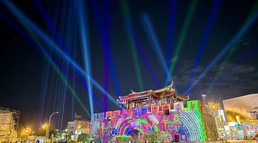 屏東縣政府以光影藝術點亮古城歷史風華,南門在夜晚華麗變身為時光舞台,以合奏(土地的樂章)、 蘭花(春天的筆跡)、月琴(夢的序曲)、原民意象(身體的律動與天空的對話)、落山風(山海之間的氣流)、城牆(時間的眼睛)等六大段落為主題,細細訴說恆春半島的歷史軌跡,跨域音樂搭配大型光雕投影,打造沉浸式觀賞體驗。