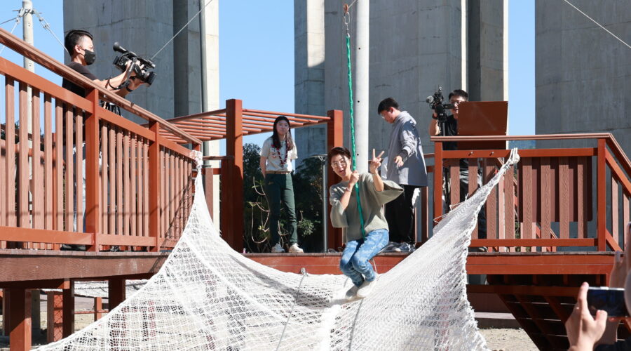 這座園區以「與森林共棲」為核心理念,廣泛採用自然材質與地景式設計,讓遊憩設施與既有地形、植栽完美融合,營造出全國少見的高聳交流道下「隱藏版森林樂園」。許縣長表示,國姓交流道有『全國最高交流道』的美名,如今再加上這座兼具藝術、休閒、生態與運動的山訓園區,更是有加分效果。