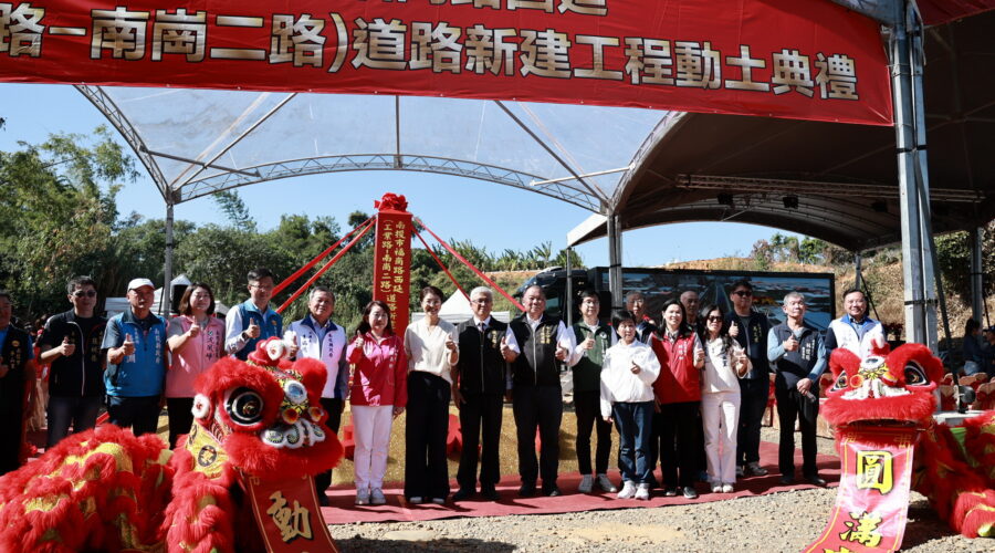 南投縣府8日辦理福崗路西沿道路建設計畫動土典禮,由縣長許淑華主持,福崗路全線完工後可串連國道3號南投交流道至工業路(139丙線),完成南崗工業區、旺來產業園區與國道3號間最後一哩路的交通聯絡系統,讓交通更加通暢。