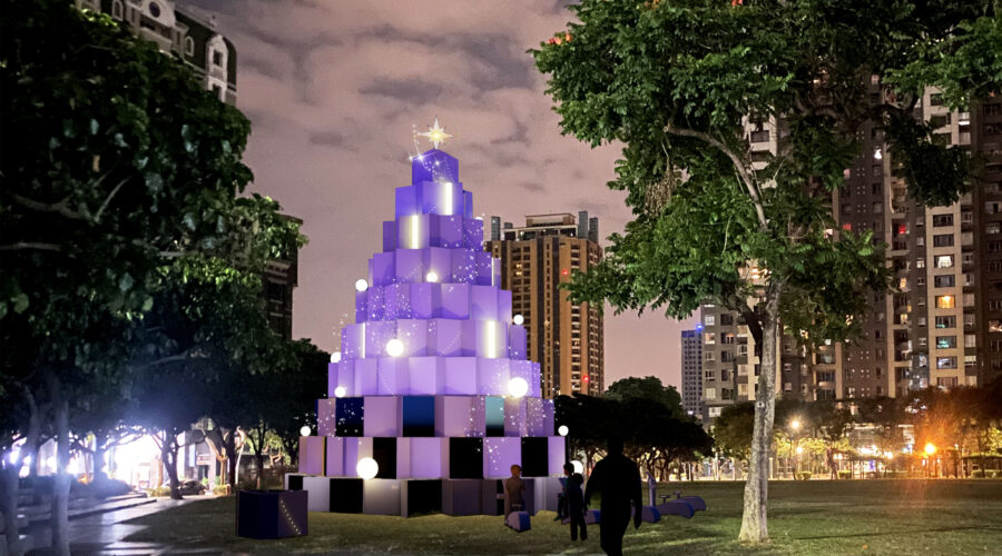 吳局長指出,「台中好聖誕」已邁入第六屆,每年以不同主題將節慶的幸福能量散播至城市各角落,今年並以「讓愛走動 Together」為主題,邀請市民以行動點亮城市,讓愛流動、幸福延續,現場更設置9米高夢幻主燈「聚.光 | Gather the Light」,以溫暖光影與柔霧紫為主色,搭配閃爍燈效與幾何堆疊結構,展現濃厚的現代藝術風格,現場更設置5台腳踏車發電裝置,民眾騎乘後可提升主燈亮度並播放祝福音樂,象徵「行動中的愛」,為城市注入更多溫暖與希望。