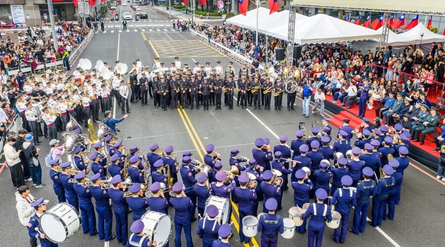 2025嘉義市國際管樂節今(20)日在嘉義市政府前中山路迎來最令人熱血沸騰的限定演出「陸・海・空三軍聯合BATTLE」快閃登場,嘉義市長黃敏惠也全程參與。四所軍校樂隊首度以正式節目形式同臺較勁,磅礡樂聲與高度紀律交織出震撼街頭的軍樂盛景,更帶來非正式的即興Battle,high翻全場,吸引大批市民與樂迷聚集觀賞,成為本屆管樂節最具話題性的經典畫面之一。