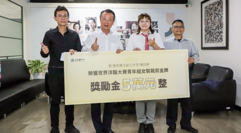 嘉義青年展現國際頂尖實力!在地青創品牌「連衣連文創工作室」負責人陳詩婷代表台灣前往韓國參加「裁縫界奧斯卡」世界洋服大賽,勇奪第40屆「女裝裁剪比賽」青年組金牌。嘉義縣長翁章梁今24日頒發獎勵金5萬元,陳詩婷也為縣長量身,將製作一套專屬西裝回贈。