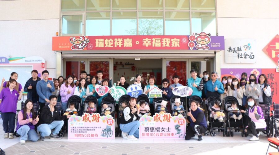 嘉義縣社會局今5日舉行「2026台灣燈會輪椅及嬰兒推車聯合捐贈儀式」,社團法人中華高滲透水冷光照護協會媒合財團法人辜公亮文教基金會及方亮股份有限公司捐贈50台輪椅,仁義湖岸大酒店董事長蔡惠櫻同時捐贈100台嬰兒推車,提供燈會期間身障者、行動不便長輩及育兒家庭更方便、安心的友善環境 。