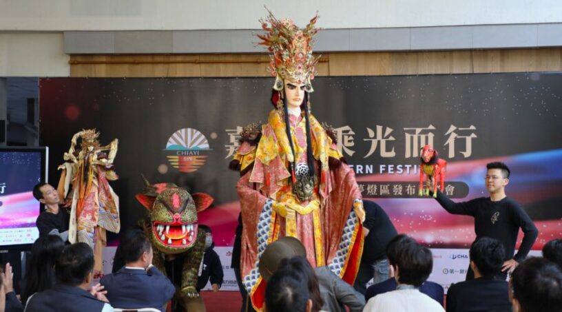 記者會開場由民雄鄉三昧堂創意木偶團隊帶來「王孫大使」精華演出,該團隊為台灣燈會打造大型戲偶與布袋戲造型,把嘉義在地文化元素帶進燈會舞台。