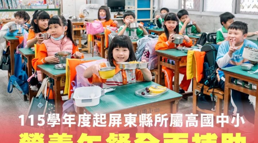 屏東縣長周春米今天宣布,宣布115 學年度開始,屏東縣所屬高國中小營養午餐全面補助!