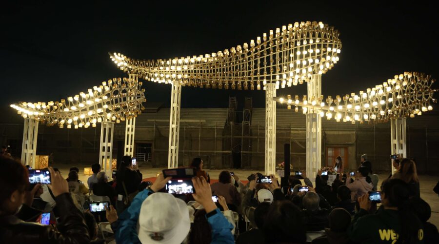 副縣長陳璧君表示,《光之祥雲》結合玻璃工藝、光影設計與在地信仰文化,展現北港深厚的人文底蘊,未來將搭配倉庫群修復進程,逐步形塑園區完整文化機能,讓藝術裝置成為居民日常生活的一部分,也為後續北港燈會及相關活動提供重要場域。