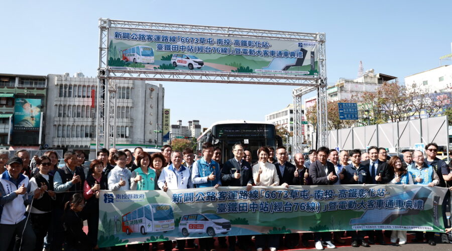 為提升南投地區公共運輸便利性並推動永續旅遊發展,縣府20日在南投復興停車場(南投轉運站預定地)舉辦新闢公路客運路線「6673草屯-南投-高鐵彰化站-臺鐵田中站(經台76線八卦山隧道)」暨電動巴士通車典禮,新路線補上本縣南下客運長期不足的轉乘缺口,有效提升旅運效率,縣長許淑華與貴賓們共同剪綵啟用,展現南投在交通服務與低碳運輸的雙軸推動成果。