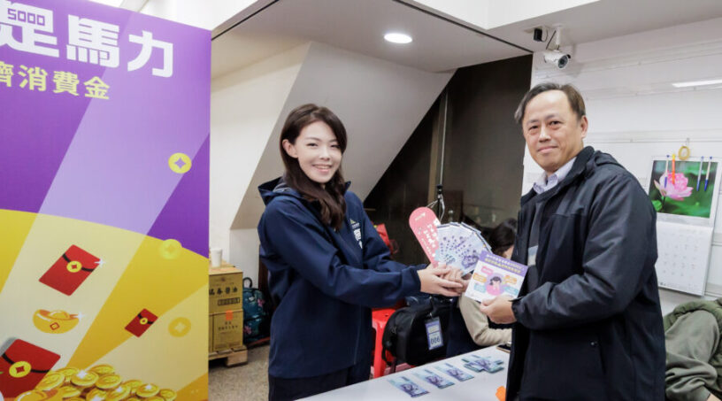 第二階段「實體領取、感受溫馨」:即為今日(1/24)於全市設置的361個發放據點,由第一線工作人員直接發放現金,服務習慣使用實體貨幣的市民。