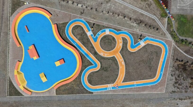 水利局說明,本案為回應地方建議並結合區域發展需求所推動的重要水岸活化工程,總經費約新台幣550萬元,規劃設置約2,500平方公尺滑步車道及滑板車廣場,鋪面採繽紛活潑設計,並融入紅綠燈、道路標誌等交通號誌元素,讓孩童在遊戲過程中自然建立交通安全觀念,也讓家長能安心陪伴,打造兼具運動、學習與親子互動功能的多元場域。