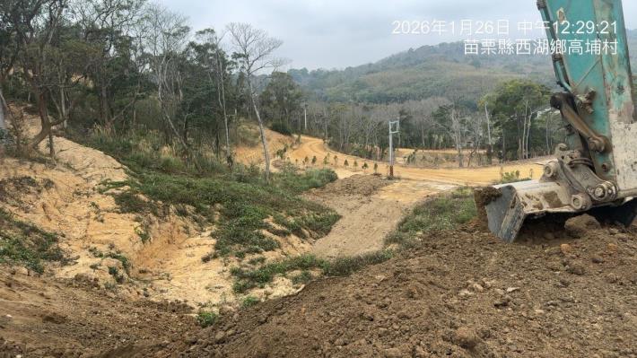 苗栗縣政府守護國土再出重拳!縣府水利處1月26日於西湖鄉高埔村苗 128 線周邊,經苗栗縣警察局通霄分局通報,查獲一起未經申請的大規模山坡地違規案。現場不僅開挖面積近 3 公頃,更驚見業者載運大量「來源不明」的土方進行回填。縣府除當場依《水土保持法》勒令停工外,針對土方來源交代不清的部分,將啟動跨局處聯合稽查,誓言追查到底,絕不容許不肖業者將山林當作「黑心棄土場」。