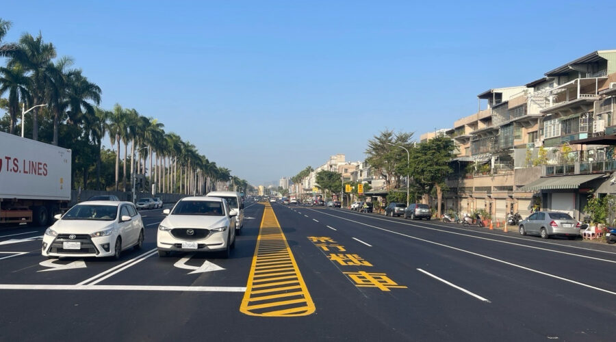 位於中正國防幹部預備學校前的鳳山區凱旋路(鳳頂路至中崙二路),是鳳山及附近小港、前鎮等區居民往來路線,工務局長楊欽富今(12)日表示,為提升用路品質,道路養護工程處獲內政部國土管理署經費補助,改善經費約1,110萬,於近期完成路面翻新並增設左轉車道及自行車道,通行更舒適安全。