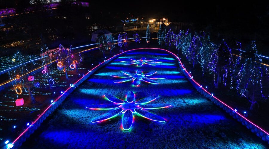 夜間則結合燈會主展區水上LED燈光藝術設計,打造「水上SUP七彩炫麗LED燈光展示區」。透過花朵造型SUP水上燈光裝置藝術與水面倒影效果,呈現科技與藝術交織的夢幻光影,形塑動靜交融的水岸光廊。燈光秀並與周邊燈區相互呼應,展現水域與燈會融合的創新美學,為南投夜色增添璀璨新意。