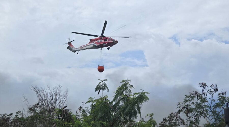 上午10時台東大隊副大隊長吳明育指出,目前堤防側近海處仍有部分殘餘火勢,且東北方綠樹叢有延燒趨勢,已增派水箱車前往沙灘點布線防禦。由於部分火點位於人車無法進入的區域,評估若待其自行熄滅恐曠日廢時。消防局119指揮中心今日上午已正式向消防署申請空勤直升機支援空中滅火作業。