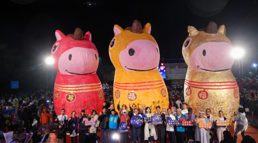 被譽為「此生必遊」的全球知名節慶—「2026新北市平溪天燈節」,於今(27)日晚間在平溪國中盛大登場,吸引眾多國內外旅客熱情參與。新北市市長侯友宜親臨現場,攜手多位國、內外貴賓,共同施放象徵福氣的三盞巨型福馬主燈,並首次展現「馬驫奔騰」光雕秀,見證福馬與天燈同驫的祈福盛典,祝福大家新的一年都能「馬祥厚運」!
