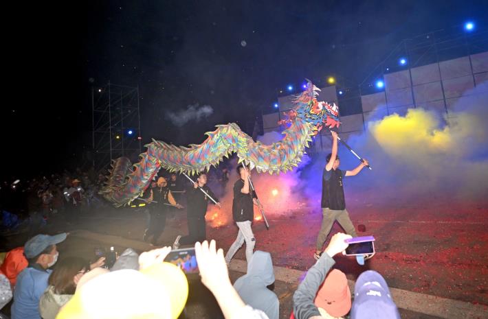 由於民間流傳越炸越旺之說,主辦單位準備大量鞭炮,不斷的擲向龍陣,神龍也隨著熱烈的節奏在煙霧中騰躍、翻飛,活靈活現,最後並上演炸龍頭戲碼,在龍頭上掛滿鞭炮,瘋狂炮炸,讓現場湧入的民眾為之瘋狂。