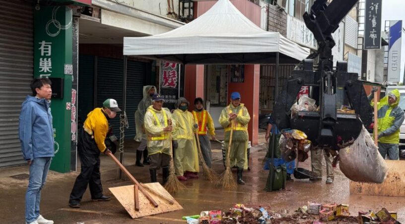 今(5)清晨再度全員出動,儘管天空飄著細雨,濕滑路面及被雨水浸濕的鞭炮紙屑增加清掃難度,同仁們仍不畏天候影響,逐段清理、仔細沖洗,讓臺東市在最短時間內恢復整潔樣貌。