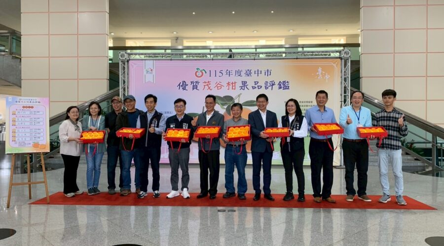 為透過農產品評鑑提升台中市茂谷柑的品質與食用安全,讓消費者安心選購在地優質的農特產品,建立台中市優質茂谷柑市場品牌,台中市政府農業局輔導東勢區農會於今(6)日在台中市政府陽明市政大樓1樓大廳舉辦「115年度台中市優質茂谷柑果品評鑑活動」,共計60組農友報名參賽,最終由東勢區謝世新勇奪冠軍殊榮。