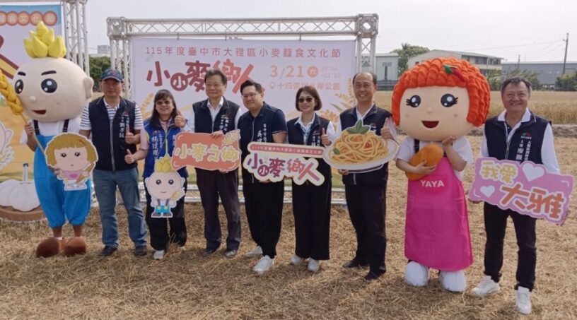 台中大雅栽種小麥歷史悠久,為讓民眾近距離認識小麥,台中市政府農業局輔導大雅區公所於21日上午在十四張圳水岸公園舉辦「小麥麵食文化節」活動。歡迎民眾把握機會來大雅欣賞金黃色麥田的農村景緻,認識小麥產業的多元性,在麥田中留影、感受搖曳麥浪吧!