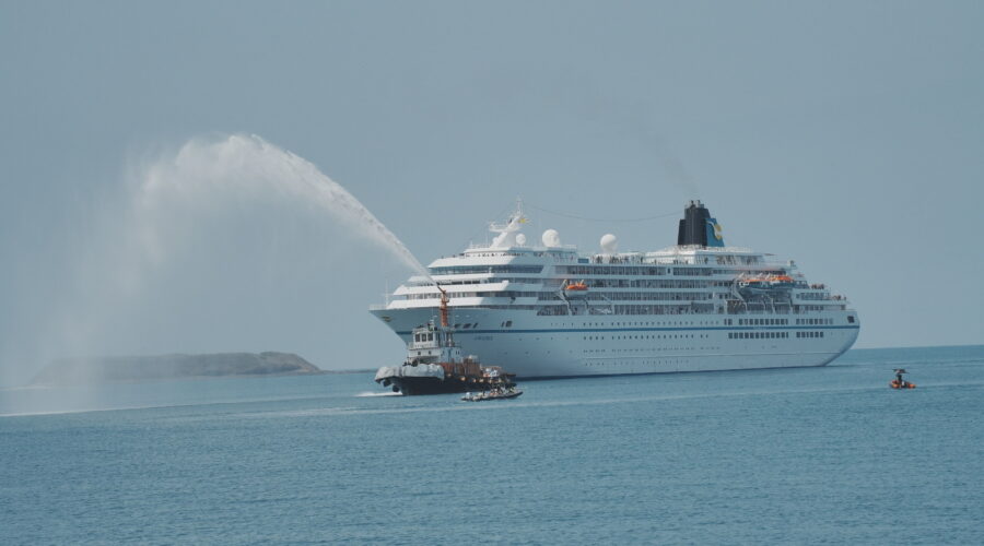 鳳凰冷泉(Phoenix Reisen)郵輪公司所屬巴哈馬籍「阿曼達」(Amadea)郵輪於3月24日首度蒞臨澎湖,上午約11時15分抵達港外,由港務公司以噴水禮歡迎後,安排至馬公碼頭區1號郵輪碼頭停泊,縣府及澎湖國家風景區管理處邀請菊之音樂團迎賓,縣府陳美齡處長、港務公司馬公管理處鐘偉誠處長及澎湖國家風景區管理處郭振陵處長等人登輪代表致贈首航紀念品,熱情歡迎郵輪到訪澎湖。