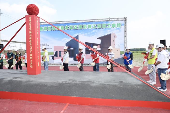 為強化溪北地區防洪韌性,台南市政府今(13)日舉行「後壁區菁寮抽水站改建工程」開工動土典禮,由市長黃偉哲親自主持。黃偉哲表示,強化溪北地區水利建設責無旁貸,本案總經費達3.34億元,完工後抽水量將提升至20CMS(每秒立方公尺),可有效紓解後壁及周邊地區積淹水壓力。