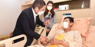 鍾東錦慰問苗栗隨機砍人案見義勇為的林先生 林妻:救人像是老天指派的任務